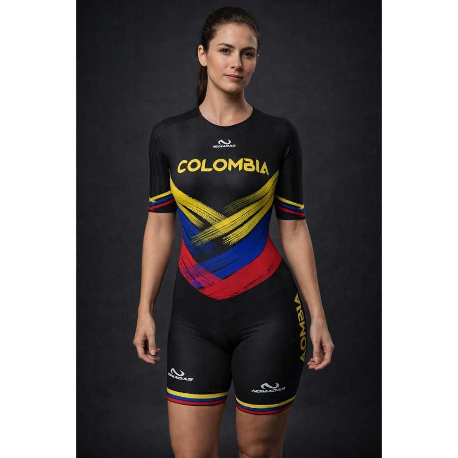 La combinación de la aerodinámica precisa, la compresión perfecta y la libertad de movimiento total se unen para crear más que un traje de patinaje: es una declaración de intenciones. El negro profundo y los colores vibrantes de la bandera nacional no solo representan tu orgullo colombiano sino también tu presencia imponente en la pista.